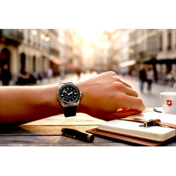 • Manufacturer no.: 241976.1 • Manufacturer series: Journey 1884 43mm • Functions: Antimagnetic, Date, Hour, Minute, Second • Movement: Battery (quartz) • Movement label: Swiss Made • Dial color: Black • Display: Analog • Water resistant: 20 • Bezel: counterclockwise, Turnable • Surface finish: Matted, Polished • Case color: Silver • Case material: Stainless steel • Case thickness: 12 • Case shape: Round • Case width: 43 • Caseback: screwed, Stainless steel bottom • Gender: Mens • Crown: Screwed • Glas: anti-reflecting, Saphire glass • Lighting: Illum. hands, Illum. indexes • Style: Sporty • Strap material: Calf leather • Strap color: Brown • Lug width: 21 • Clasp: Buckle clasp • Max wrist circumferences: 220 • Item weight: 0.11 • Scope of delivery: 2nd strap, Box, Instruction, Packaging, Warranty doc., travel case