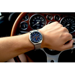 This re-edition faithfully preserves the spirit of the original with its compact 38 mm case, sporty chronograph layout, and vintage racing aesthetics. At the same time, it incorporates a modern quartz movement to ensure high precision and everyday reliability.