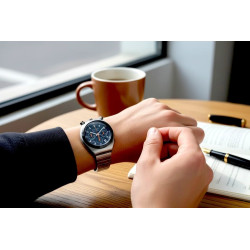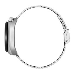 The stainless steel bracelet in silver tone (20 mm width) features a fold-over clasp with push button for secure and comfortable wear. The watch fits wrists from 135 to 200 mm in circumference and weighs only 97 g, ensuring excellent comfort throughout the day.