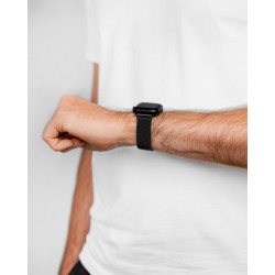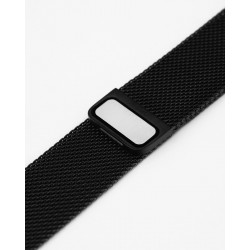 Bransoleta 30161450-5-22 zachwyca swoim eleganckim wyglądem, wykonanym z nierdzewnej stali w matowym czarnym odcieniu z siateczkową strukturą Milanese. Dostępna w rozmiarze L, idealnie dopasowuje się do nadgarstków o różnych obwodach dzięki elastycznemu designowi i grubości 1,5 mm zarówno przy mocowaniu, jak i klamrze. Mocna klamra magnetyczna w kolorze czarnym zapewnia bezpieczne zapięcie i nieskończoną regulację, oferując wygodę noszenia. System Quick-Release umożliwia łatwą wymianę bez narzędzi.