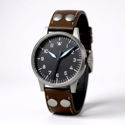 Laco Pilot Mülheim Typ-A 39 mm to mechaniczny zegarek męski, będący jedną z najbardziej wiernych rekonstrukcji historycznych zegarków obserwacyjnych z lat 40. XX wieku, znanych jako B-Uhr (Beobachtungsuhren). Modele te powstawały według ścisłych wytycznych niemieckiego Ministerstwa Lotnictwa (RLM) i były używane jako precyzyjne instrumenty nawigacyjne przez pilotów Luftwaffe.