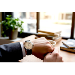 - Beżowa tarcza z rzymskimi indeksami – klasyczny styl retro