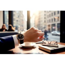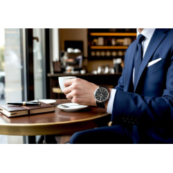 Jego siłą jest ponadczasowość. Czysta, czytelna czarna tarcza nadaje mu wyrafinowanego charakteru, a subtelne wykończenie koperty i klasyczny skórzany pasek podkreślają elegancki styl. To zegarek dla mężczyzny, który nie potrzebuje przesady – wystarczy jakość, proporcja i dobry gust.