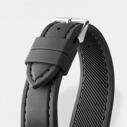 Ten pasek łączy sportowy charakter z funkcjonalnością, oferując wodoodporność i odporność na codzienne wyzwania dzięki wysokiej jakości kauczukowi. Ryflowana struktura wewnętrzna odprowadza wilgoć, zapewniając komfort nawet podczas intensywnego użytkowania. Szerokość 22 mm/20 mm pasuje do większości zegarków sportowych, a elastyczność materiału gwarantuje doskonałe dopasowanie.
