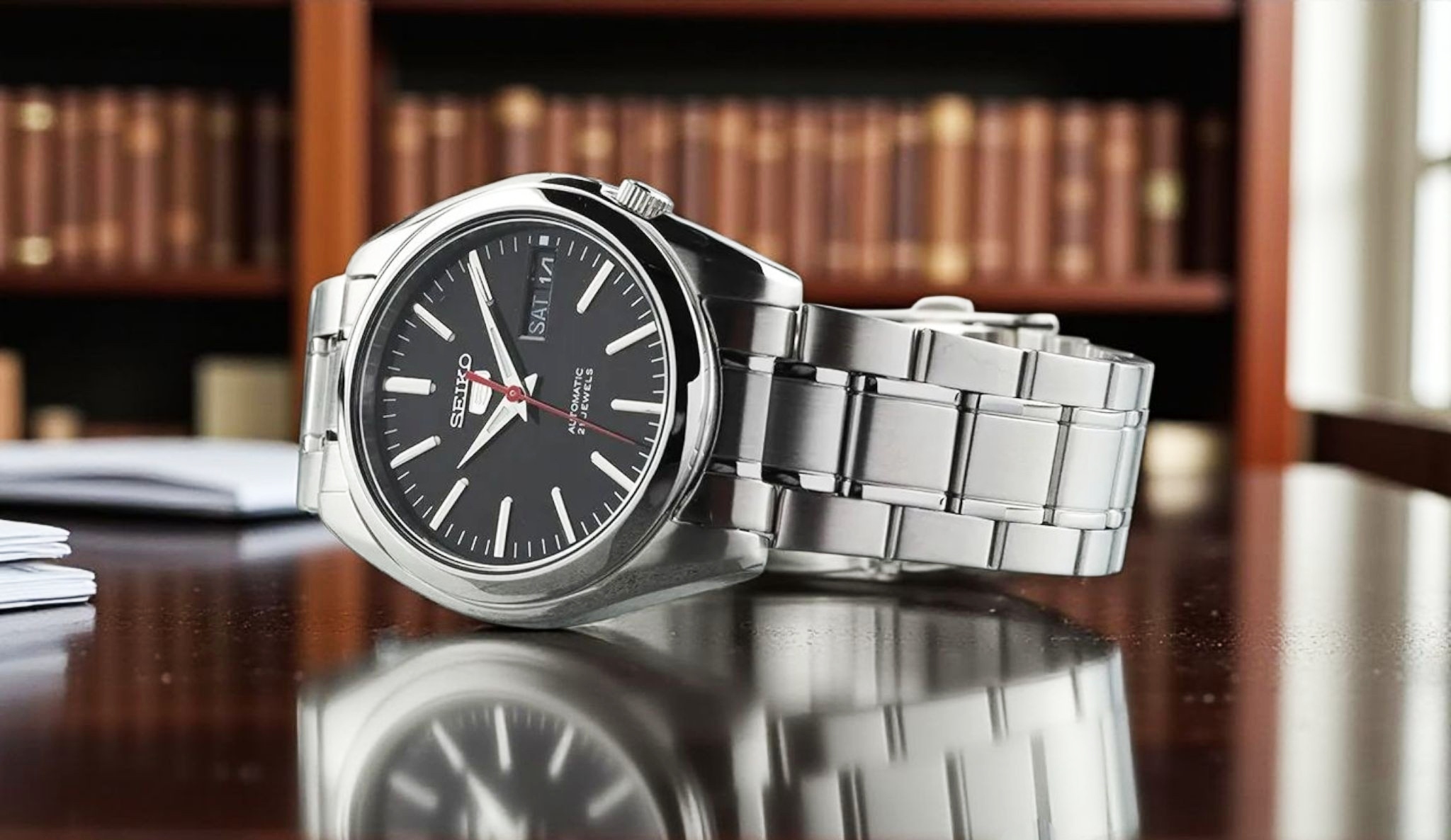 - Mechanizm Seiko 7S26 – niezawodny, automatyczny z 40-godzinną rezerwą.