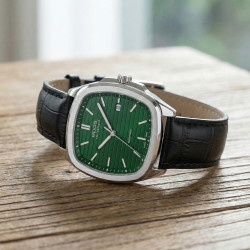 Model 3511 z kolekcji Timeless wyróżnia się idealnie wyważonymi proporcjami. Koperta o średnicy 40 mm wykonana z najwyższej jakości stali szlachetnej doskonale układa się na męskim nadgarstku, gwarantując komfort noszenia przez cały dzień. Zielona tarcza o czytelnym układzie, ozdobiona nakładanymi indeksami, emanuje spokojem i harmonią, a klasyczny czarny pasek ze skóry naturalnej dodaje całości formalnego charakteru.