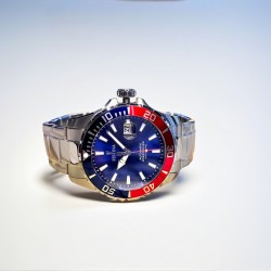 Model napędza mechanizm automatyczny Miyota z 21 kamieniami i rezerwą chodu około 40 godzin, napędzany ruchem nadgarstka – bez baterii. Mechanizm oferuje funkcję hakowania i ręcznego nakręcania, ułatwiając precyzyjne ustawienie czasu. Wodoszczelność 20 ATM (200 m) pozwala na nurkowanie z akwalungiem, a szkło szafirowe chroni tarczę przed zarysowaniami. Waga wynosi około 150 g, a zegarek zachowuje pełną 2-letnią gwarancję jako pełnowartościowy produkt.