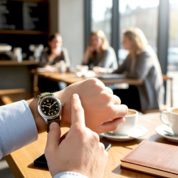 Lotniczy - zegarki stylizowane na te używane przez pilotów charakteryzują się ponadprzeciętną czytelnością tarczy. Duże cyfry i przejrzystość to cechy, które ceni się w lotnictwie zarówno jak i odporność na warunki atmosferyczne, dokładność czy przeciążenia.