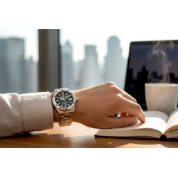Zielona tarcza z przejściem tonalnym nadaje temu modelowi głębi i nowoczesnego charakteru. W zależności od światła zegarek wygląda inaczej – raz bardziej elegancko, raz bardziej sportowo. To właśnie ten detal sprawia, że Orient Mako RA-AC0Q13E30B wyróżnia się na tle klasycznych diverów.